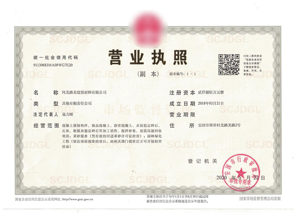 河北路美建筑材料有限公司坐落于安国市郑章村北(安国混凝土),是一家年生产20万立方商品混凝土、30万吨水泥稳定碎石的生产企业。公司成立于2018年,注册资金2800万元,占地面积30余亩。公司现拥有一套商品混凝土180线,一套水稳机组,安国混凝土运输罐车20余辆,混凝土输送泵车5辆。铲车5辆,勾机2台,水稳运输车若干。
